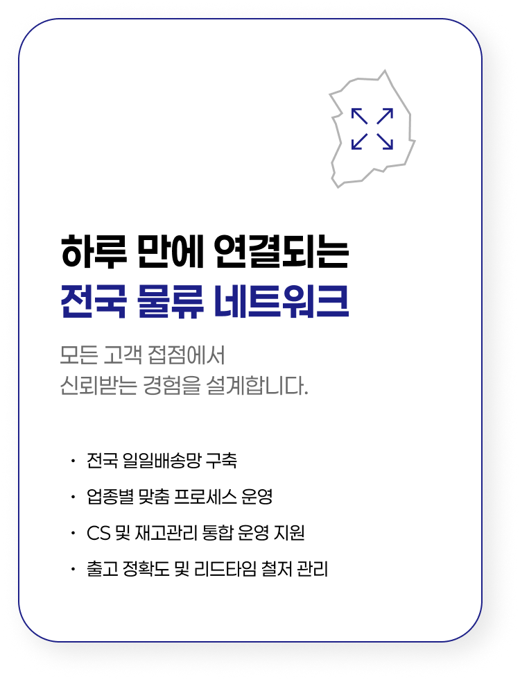 단순 창고·배송을 넘어 고객 만족도와 브랜드 이미지를 함께 설계합니다